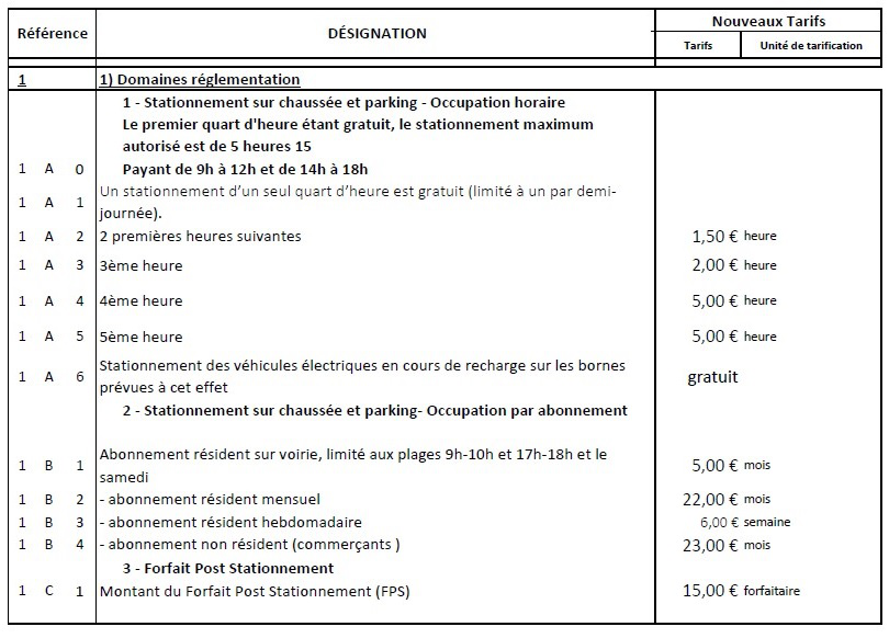 ARTICLE 16 – ZONES DE STATIONNEMENT ET TARIFS