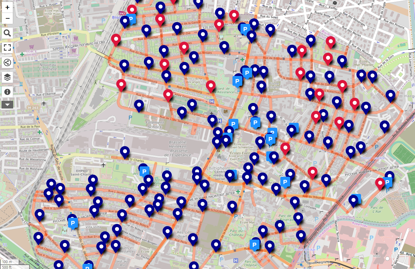 Pour planifier votre visite à Schiltigheim vous pouvez consulter la position des horodateurs, veuillez cliquer et zoomer sur la carte ci-dessous :